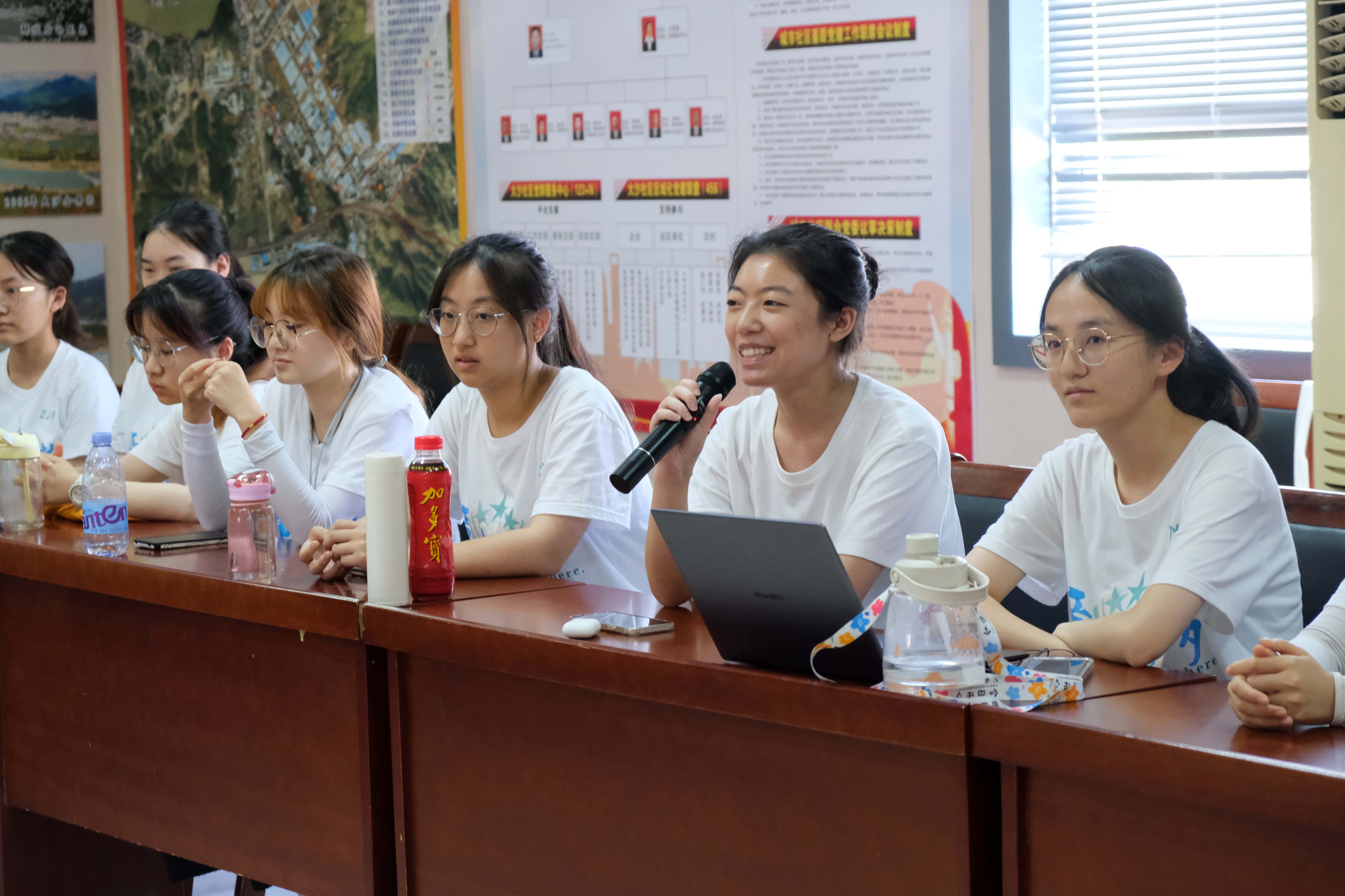 叶老师来到大沙社区活动中心后,首先与暑期社会实践队中各组的组长进行了深入交流,了解教育支教、实地调研、媒体外宣、活动组织、后勤保障等实践内容的开展情况。随后,由学院辅导员、本次实践队的负责人蒲伟军老师主持开展了全体队员参加的总结交流会。