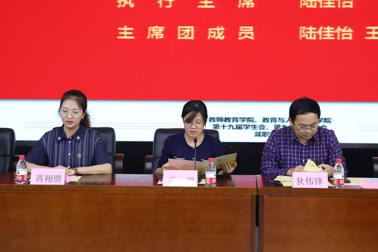 此次典礼在庄严的国歌声中正式拉开帷幕。学生会指导老师、学院团委书记叶青老师宣读了第十九届学生会成员名单,研究生会指导老师黄璐宣读了第九届研究生会成员名单。