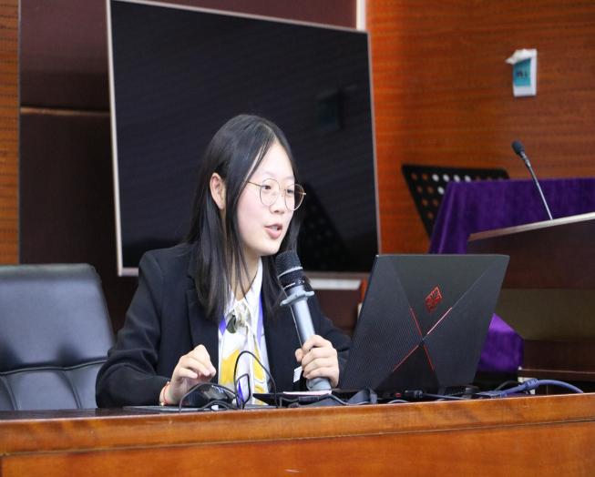 随后进行分享的是用相机快门声锁住美好瞬间,记录教师教育学院美好时光的摄影部。部门代表人应佳怡上台讲解了摄影技巧,以“人物”“运动”“后期”“感想”四点展开了有关摄影技能的分享,向大家讲述了她的拍摄经验。她侧重地讲到,摄影人应关注主要元素,掌握找准机位等主要技巧;同时,也应该具有强大的胆量,敢于站在台中央,穿梭于各个活动赛事的角落,以获得最佳的照片效果。