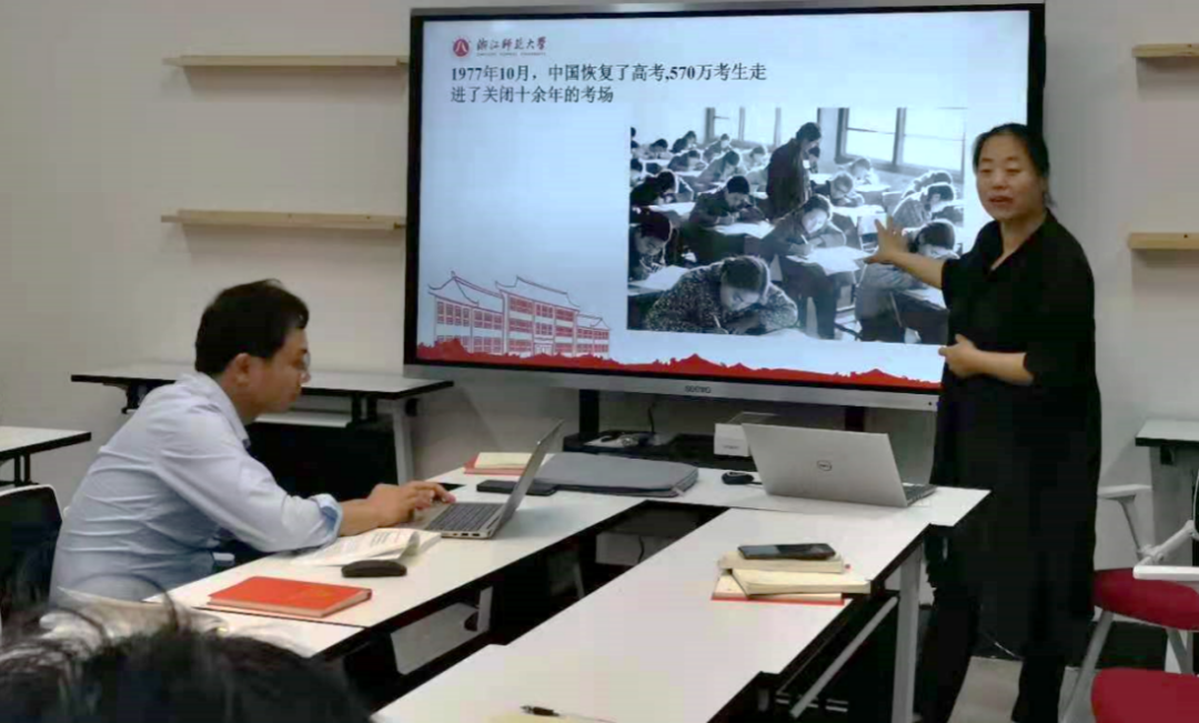 5月19日,教育技术学系教师党支部在17-711党员教师(教授)工作室召开党史学习教育专题,梁萍儿同志结合学校和学院教育类专业的发展,以“改革开放三十年教育方针的变迁”为主题,给全体党员教师上了一堂微党课。