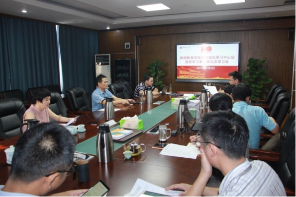 按照学校党史学习教育工作安排,教师教育学院党委理论学习中心组学习会举行党史学习教育第九次学习会,围绕《在庆祝中国共产党成立100周年大会上的讲话》、《学习贯彻习近平总书记“七一”重要讲话精神系列专题宣讲报告》和《中国共产党的历史使命与行动价值》等材料进行自学,并结合工作实际开展深入交流和讨论。教师教育学院党委领导班子成员,院办、工会、学工办负责人参加本次学习会。