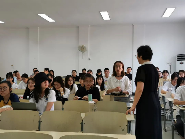 “工欲善其事,必先利其器。”想要成为一名卓越的人民教师,必须先从提升自身教师素养做起,只有充分掌握教师技能才能自信走上讲台。随后,李老师从“教师体态语、板书书写、课堂导入、教学教法、互动评价”等五个方面,用形象的举例、诙谐的语言,向全体同学强调了教师在课堂教学中必备的行为规范,并着重指出,教师在进行教学设计时,要认真研读教材,精心设计教学的各个环节,以学生为中心,确保教学活动能够充分调动学生的学习积极性,让学生学有所得;在教学过程中,教师应将教材内容与扩展知识相融合,教学重点与难点相结合,通过教学设计和教师技能的发挥把知识变得好记、好懂、好用。