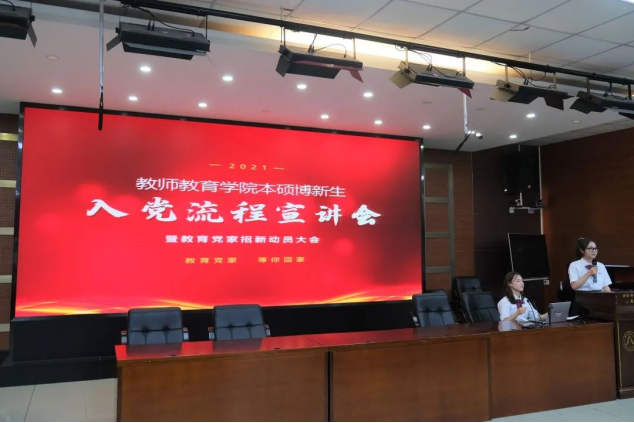 9月20日晚、21日晚,教师教育学院2021级本硕博新生入党流程宣讲会于17幢112报告厅举行,学院党委组织员、辅导员张文潇老师,党员之家全体成员共同参与。为响应疫情防控常态化要求,本次活动共计开展五场,研究生和本科生分批次参与本次活动。
