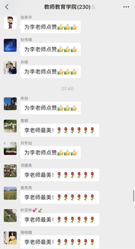 图为教师教育学院教师工作群对李鸣华老师的关心和点赞