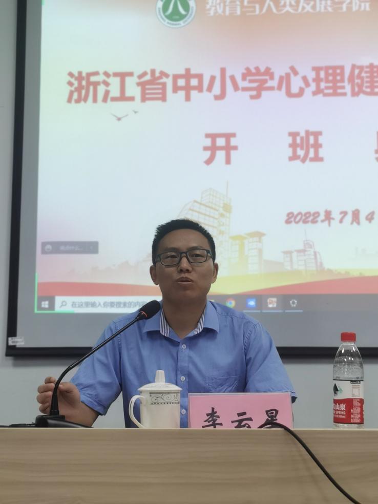浙江师范大学教师教育学院院长助理李云星代表教师教育学院欢迎各位培训老师,同时介绍了教师教育学院的历史发展过程,以及学院的观念是“面向教育现场的教师教育和基础教育研究”,并向这个研究方向发展。李云星表示教师教育学院与浙江省中小学校联系较多,浙师大有二十一所附属学校,由浙师大承担业务指导的工作,同时浙师大有着丰富的教师教育培训经验,希望各位老师在这次培训中学有所获、学有所成、学有所用。