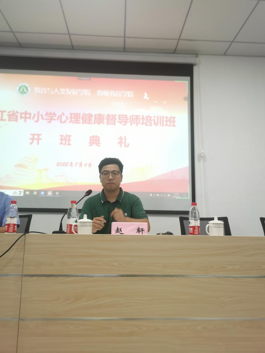 7月4日下午14:00,浙江省中小学心理健康督导师培训班在17幢718教室顺利开班,开班典礼由浙江师范大学教师教育学院赵轩博士主持,浙江师范大学副校长李伟健、浙江师范大学教师教育学院院长助理李云星出席会议并发表讲话。参与本次开班典礼的还有浙江省中小学心理健康骨干教师共计50余名培训学员。