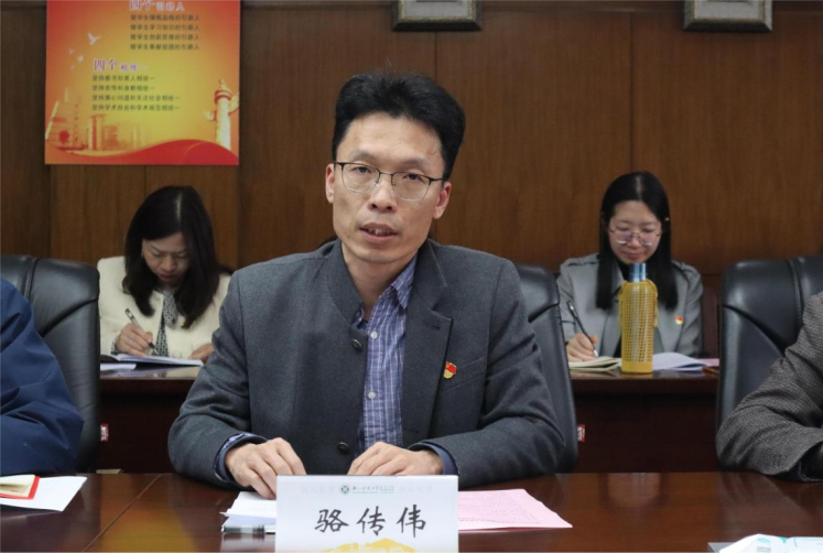 外国语学院副院长兼英语系教师党支部书记骆传伟就“蕴含课程思政能力,提升未来英语教师培养质量”提出三点建议:教师在教学中应注重融入思政元素;重视引导学生思考、探究和解决相关问题的能力;注重培养学生的社会责任感和爱国情怀。同时指出,未来英语教师的培养任重道远,需要各方协同努力。
