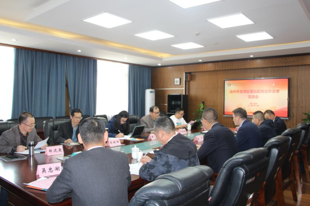 3月13日下午,温州市龙湾区教育局党委书记、局长郑祥迪,党委副书记、副局长吴杰,区教研室主任曾国眼,教育局办公室主任郑奕,基础教育科科长陈美存,浙师大附属温州十五中校长吴忠湖一行专程来我院交流洽谈。教育学院院长黄晓、党委书记俞明祥、浙师大继续教育与合作办学管理处副处长罗福建、教育学院副教授李云星博士参与本次会议。会议由浙师大附属温州十五中外派联系专家郑流爱教授主持。