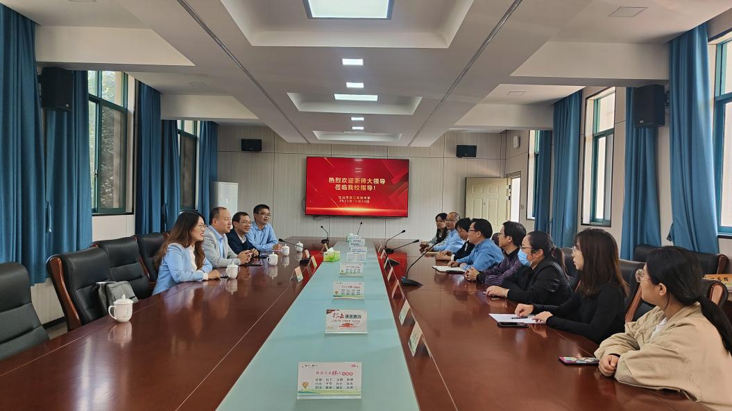 走访第一站来到了江山中学。余烨斌副校长、周凯旋副主任等对教育学院一行的到来表示热烈的欢迎。