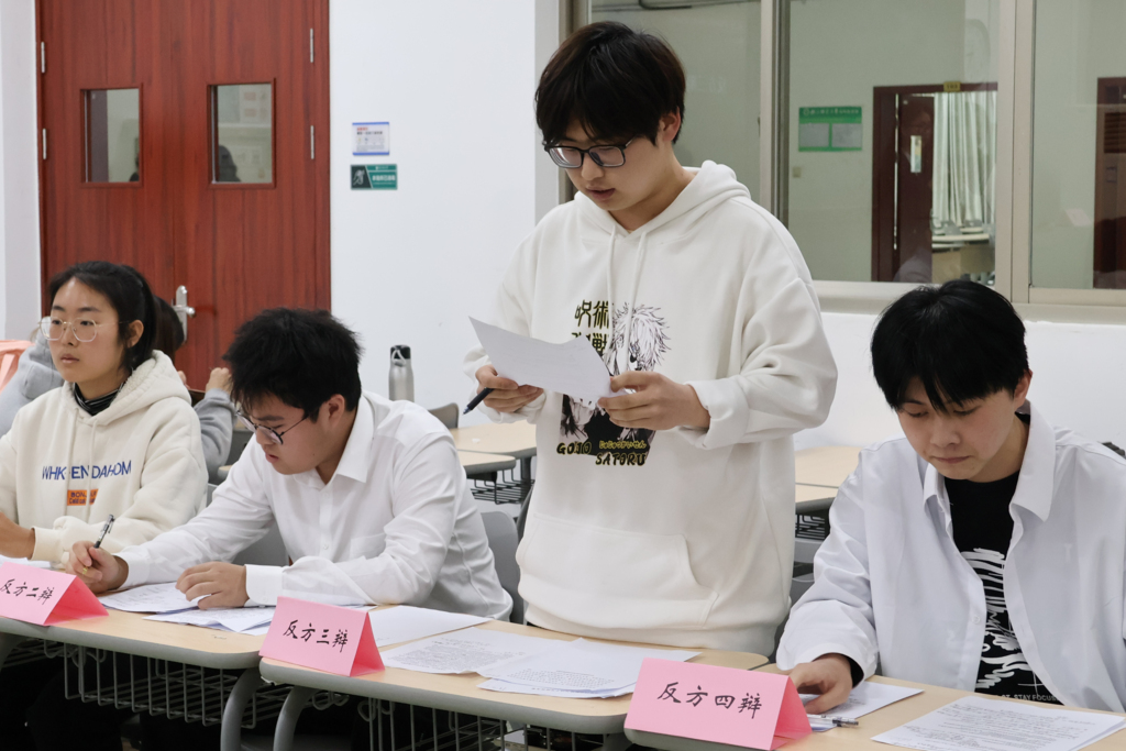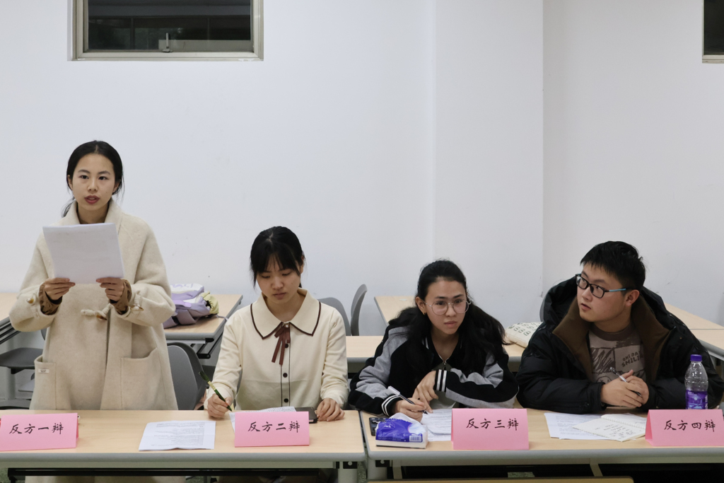 辩论的意义不在于争锋,而在于编织逻辑与创意。3月18日,教育学院2023级新生辩论赛初赛正式开始。教育学院辩论队副队长张思敏、院辩论队成员刘昱伶等担任评委,2023级新生分三场展开辩论。传统的观点固然根生蒂固,新颖的论述却总能直击人心,正反双方热情洋溢,比赛气氛如火如荼。下面,让我们一起进入比赛现场,共同体会同学们的巧言雄风。