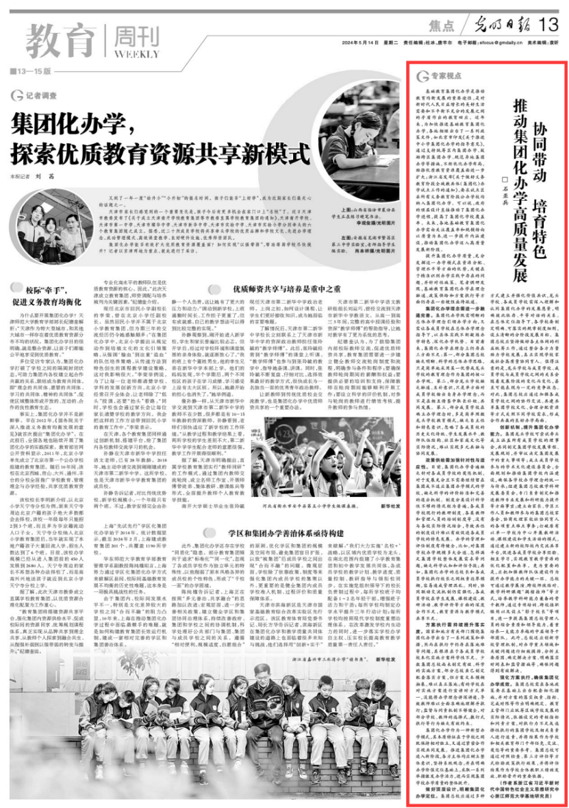 文章强调,集团化办学不仅是应对教育不均衡问题的有效策略,更是响应人民群众对更优质教育资源迫切需求的时代答案。未来,我们还需进一步以整体观、系统思维,深耕内涵,激发办学活力,推动集团化办学进入新发展阶段,共筑基础教育高质量发展的新基石。