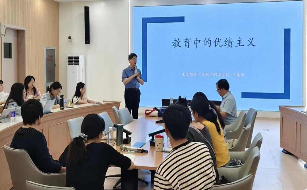 6月20日,南京师范大学王建华教授应邀做题为“教育中的优绩主义”的讲座。讲座吸引了众多师生前来聆听,会议室座无虚席,教育学院副院长王占军教授主持本次讲座。