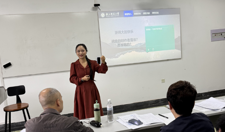 胡启慧老师授课的题目是《AIGC赋能音视频的开发》,围绕“如何理解AIGC”和“如何应用AI工具生成音视频”两个问题开展教学,通过小组讨论,课堂提问,实践操作和案例分析四种教学方法来培养学生的数智素养,提高AI知识与技能,并思考人与AI之间的关系。
