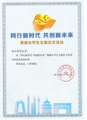 近日,在教育部港澳台事务办公室主办的“同行新时代 共创新未来”港澳台学生主题征文活动中,我院3名学子获三等奖,浙师大获得优秀组织奖。