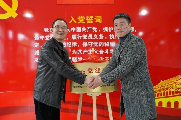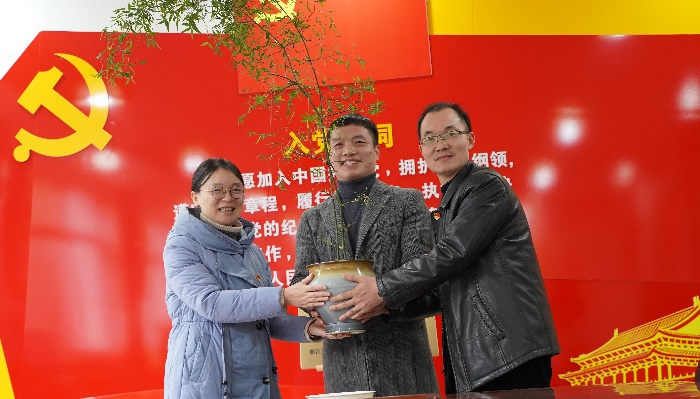 活动的高潮部分,在全体党员的见证下,郑流爱书记和陈孙宾校长共同为“联合党建阵地”揭牌。楂林小学还向课程系党支部赠予象征友谊的竹,寓意双方合作长青。未来,两校将以阵地为依托,共同举办党建活动,同创特色品牌,推动党建与教学深度融合,为双方发展注入“红色动力”。