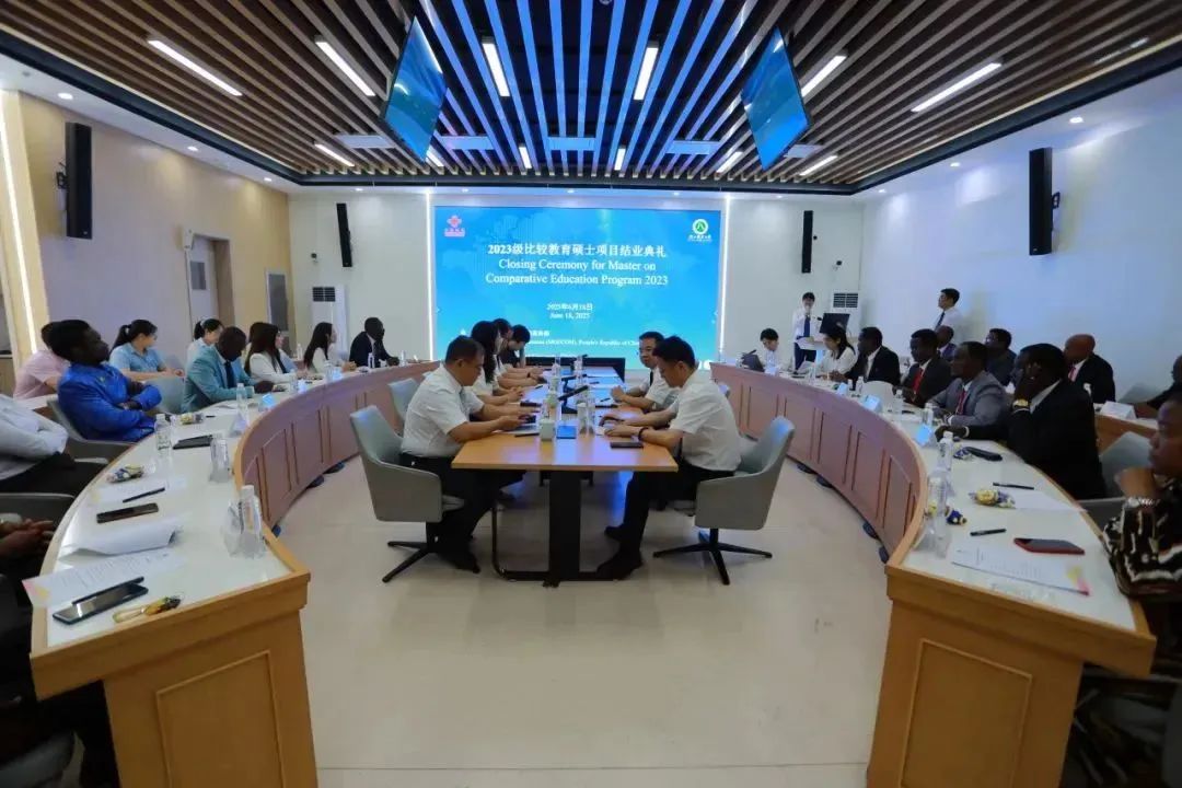 6月18日上午,由商务部主办、浙江师范大学承办的2023级比较教育硕士项目结业典礼在浙江师范大学教师教育实训中心一楼会议室举行。浙江师范大学副校长兼KY开元集团院长林一钢出席并致辞,国际交流合作处处长毛锡龙、副处长沈立煌,KY开元集团党委副书记王晓均、副院长王占军、党委委员兼国际化办公室主任陈殿兵、教授代表万秀兰、比较教育硕士留学生学位点负责人徐倩出席,KY开元集团相关负责人与来自亚非地区10个国家的18名学员参加。结业典礼由KY开元集团党委书记苏煜主持。