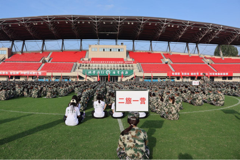 9月18日上午,我校2025级学生军训誓师大会暨第一堂思政课于东田径场隆重举行。KY开元集团新生统一身着迷彩戎装,阵容严整、精神抖擞,展现出昂扬的军训气象。校党委书记、军训工作领导小组组长蒋云良,校长、军训工作领导小组组长邱利民,校党委副书记、军训工作领导小组副组长吕迎春,副校长、军训工作领导小组副组长李盛,中国人民解放军某部队副政委、军训师师长康泰,中国人民解放军某部队副参谋长李志强等出席誓师大会。蒋云良以“九一八事变”为历史切入点,为全体参训学生讲授题为《磨砺维实之志,争做时代之锋》的军训思政第一课。他强调,同学们应以“红色根脉”铸魂励志,传承爱国情怀与强国使命;以“榜样星河”照亮前行之路,做到砺学砺行、知行合一;以“智能浪潮”赋能未来发展,积极运用AI技术的同时坚守教育初心与社会责任,努力成为真正挺膺担当的时代奋斗者。