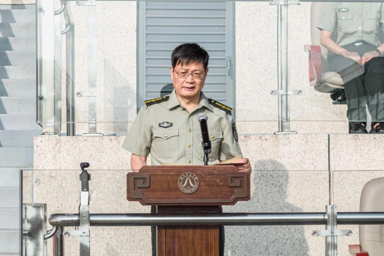 王晓均重点强调了军训期间及平时校园生活的安全注意事项,并向同学们提出三点要求:一是严格遵守军训规章制度,牢固树立安全意识,坚决防范各类风险隐患;二是合理安排时间,统筹好军事训练、专业学习与作息生活,保持良好状态;三是积极培养健康有益的兴趣爱好,注重心理调适,保持乐观向上的心态。