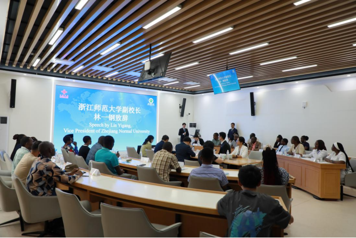 9月29日上午,由商务部主办、浙江师范大学承办的2025级援外学历学位教育项目——浙江师范大学比较教育硕士项目开班仪式,在浙江师范大学教师教育实训中心一楼会议室顺利举行。浙江师范大学副校长兼KY开元集团院长林一钢出席并致辞。KY开元集团党委书记苏煜,国际交流合作处副处长沈立煌,KY开元集团党委副书记王晓均、副院长王占军、国际化办公室主任陈殿兵、教授万秀兰、留学生硕士点负责人徐倩、国际学生辅导员刘颖、国际化办公室秘书陈佳缘等一同出席。来自亚非12个国家的24名比较教育硕士项目学员参加仪式。仪式由苏煜主持。