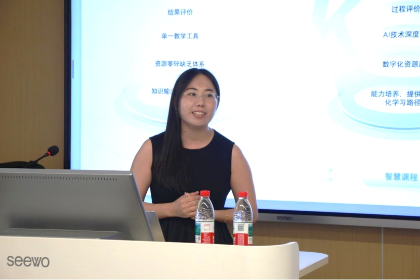 在培训授课环节,星星老师通过典型案例解析与现场演示,系统介绍了超星AI工作台的教学应用场景。该平台支持教师完成以核心素养为导向的教学设计方案构建,实现评价维度设置、成绩权重分配、评分模式选择等全流程智能化管理。参训教师通过学习任务发布、作业自动评分等功能实操,深入掌握了AI工具在教学评管各环节的应用策略。该平台覆盖课前备课、课中互动、课后评价全流程,既能有效减轻教师重复性工作负担,又能基于学情数据提供个性化教学建议,为构建数智赋能、精准教学的新范式提供了有力支撑。