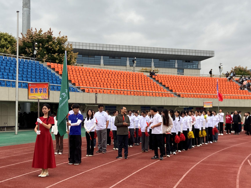 走下讲台,换上运动装,教育学院的老师们在赛场上同样光彩照人!在本次运动会中,教工组捷报频传:10x60米混合接力斩获第七,龚伟老师勇夺男子 1500米第六,邓若男老师喜获女子 800米第八。他们用速度与力量展现了课堂之外的别样风采,身体力行地诠释了“完全人格,首在体育”的育人理念。