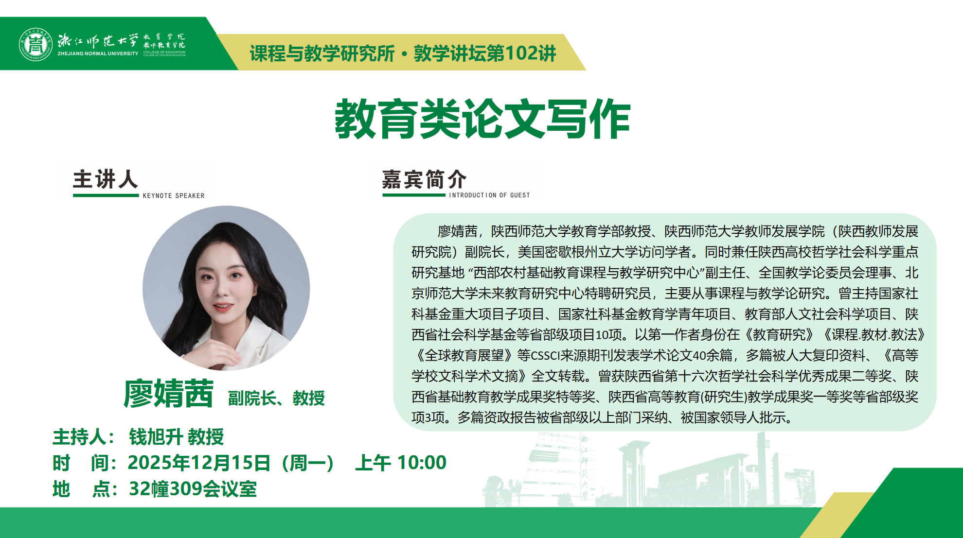 【讲座预告】廖婧茜教授主讲敦学讲坛第102讲:教育类论文写作
