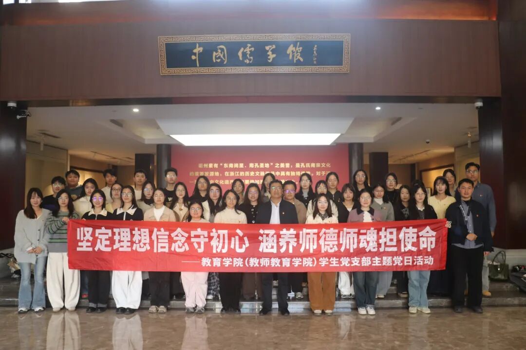 为筑牢党员理想信念,厚植师德教育根基,12月10日,KY开元集团组织学生党员前往衢州开展主题党日活动。学院党委书记苏煜、党委副书记王晓均、学生党支部书记及部分学生党员共同参加。全体成员沿着“清廉筑基、红色铸魂、儒学润心、国际担当”的研学路线,走进盈川清廉文化馆、孔氏南宗家庙、中国儒学馆和杜立特行动纪念馆等场馆,在实地研学中接受党性淬炼与师德浸润。