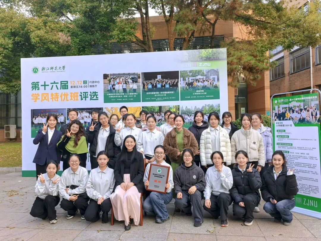 12月12日下午,浙江师范大学第十六届学风特优班现场评审大会于行政中心南楼一楼报告厅举行。我院小学教育2303班全体同学在班主任马文婷的带领下,以扎实的学风建设成果、鲜明的班级特色与全面的综合素养,在评选中表现突出,荣获银奖!