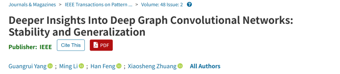 李明教授(第一通讯作者)与华南农业大学、香港城市大学研究人员在深度图卷积网络稳定性与泛化性方面取得理论突破,合作成果“Deeper insights into deep graph convolutional networks: Stability and generalization”发表在国际学术期刊《IEEE Transactions on Pattern Analysis and Machine Intelligence》(IEEE TPAMI)。