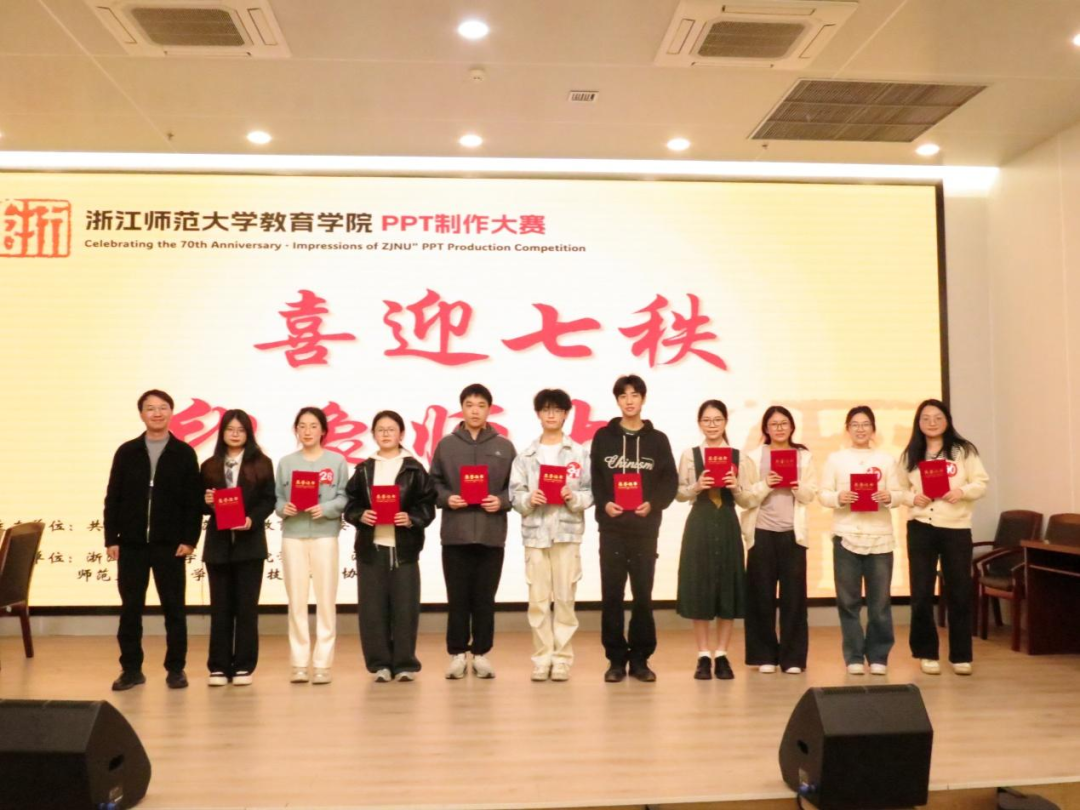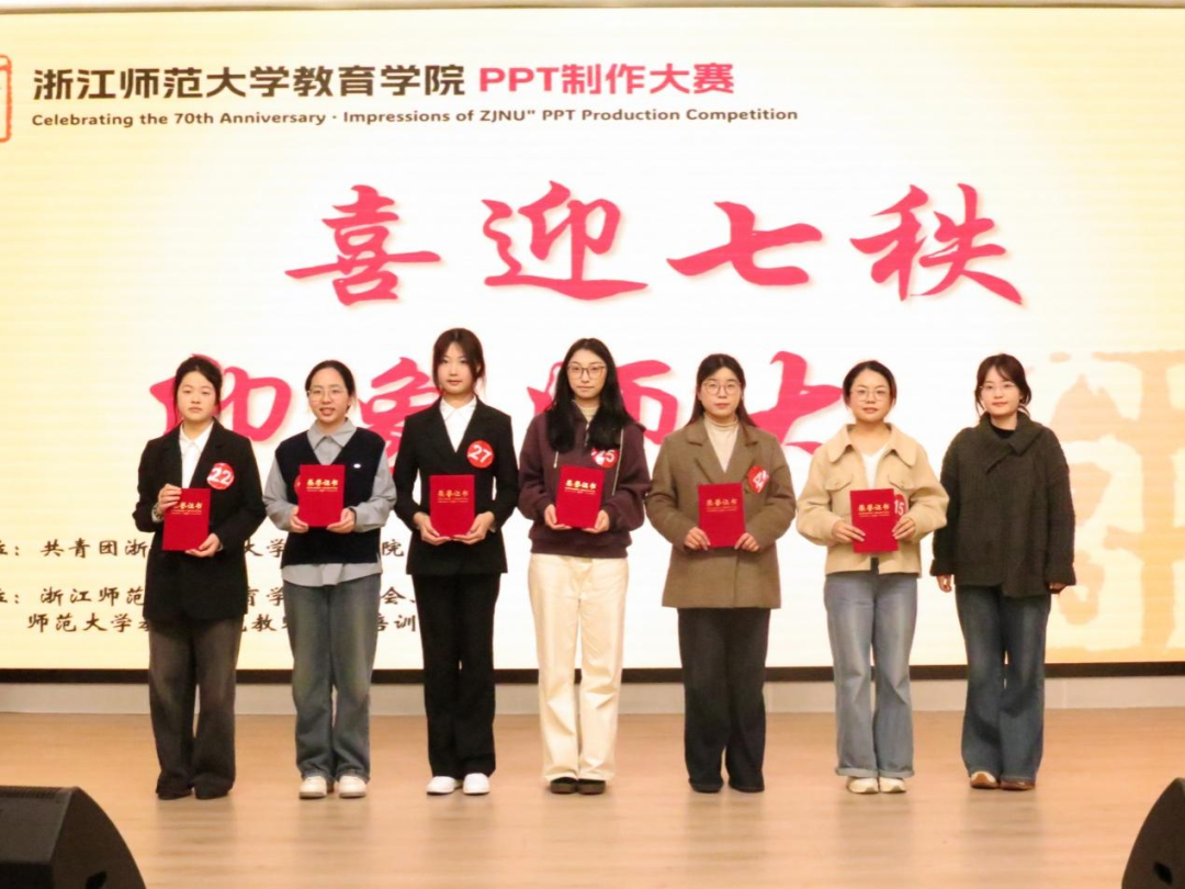 每一帧精心设计的幻灯片,都是对母校七十载芳华的深情礼赞;每一次创意与技术的碰撞,都是专业成长的有力见证。比赛有终点,磨砺无止境。浙师学子将继续踔厉奋发、精进技能,用更多优秀作品讲好浙师故事。