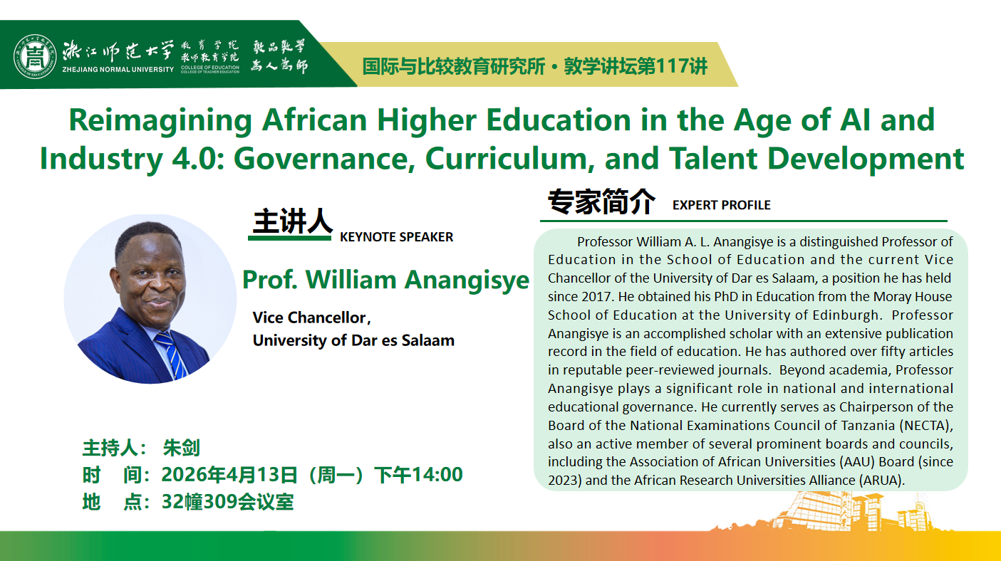 【讲座预告】坦桑尼亚达累斯萨拉姆大学校长William Anangisye教授主讲敦学讲坛第117、118讲