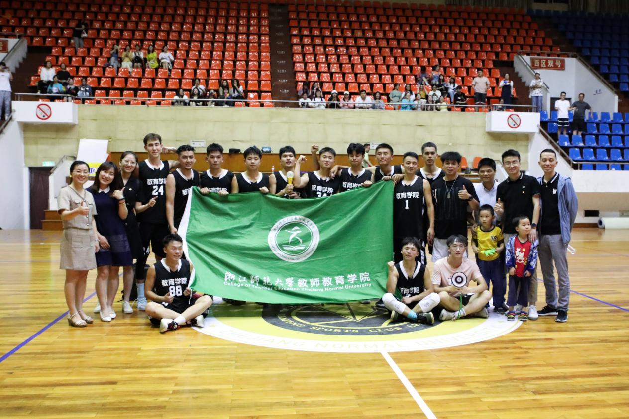 6月5日,浙江师范大学第四届尖峰校园篮球赛在北田篮球馆举行。教师教育学院男子篮球队斗志昂扬、激烈拼搏,经过一番精彩角逐,最终以56:34的佳绩成功击败地环学院,荣获浙江师范大学第四届尖峰校园篮球赛冠军。
