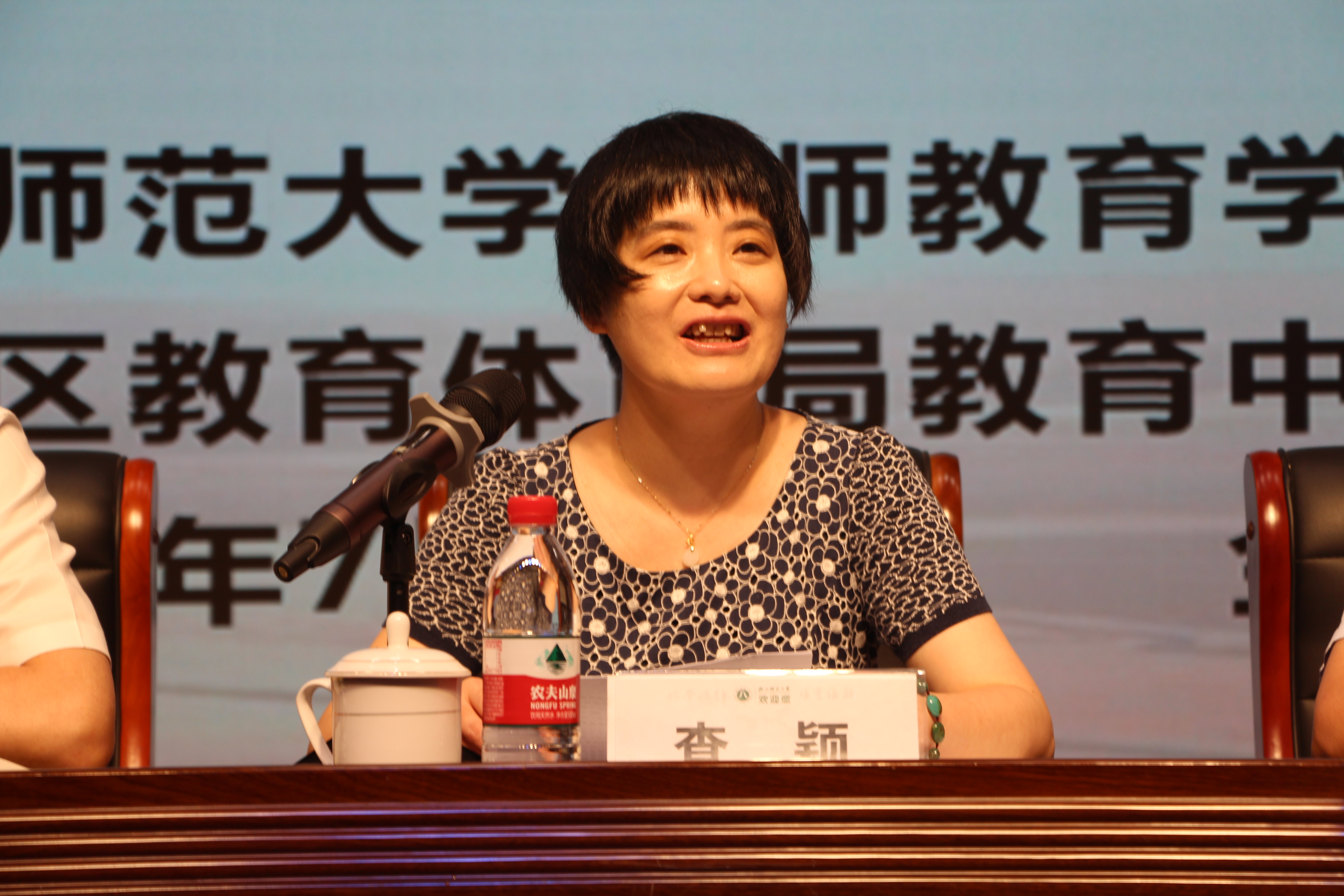 典礼伊始,浙江师范大学教师教育学院党委书记查颖发表致辞。她向金东区思政教师表示热烈欢迎,并简要介绍了浙江师范大学教师教育学院的基本概况以及田家炳德育研究中心在德育工作上的实践成果。她指出:立德树人已经成为国内教育界的普遍共识,但明白“是什么”和明确“怎么做”之间仍有鸿沟。教师们需要积极探索如何具体、有效开展学科德育和课程思政工作,提升课程育人实效。
