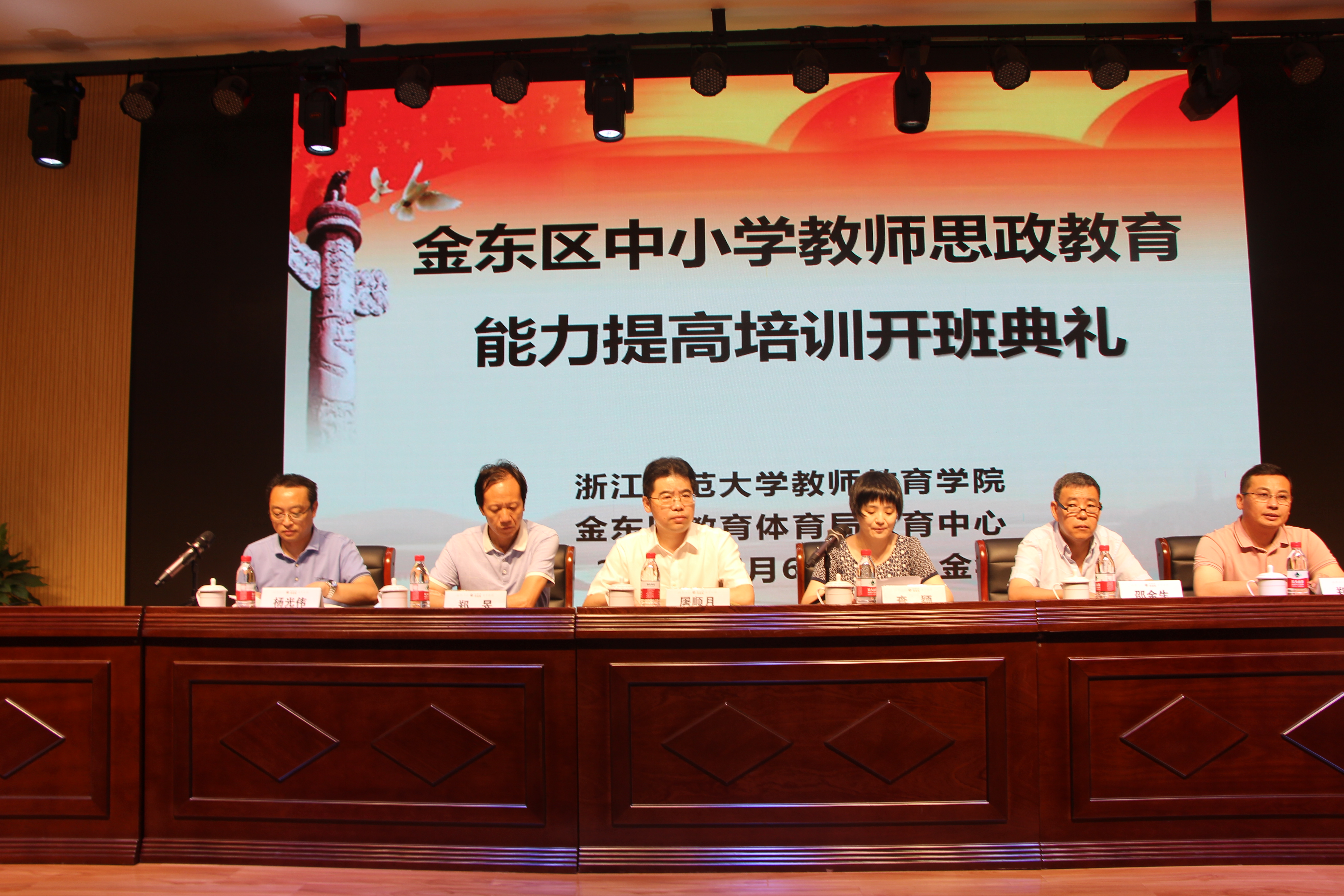 为深入学习贯彻习近平总书记在学校思想政治理论课教师座谈会上的重要讲话精神,全面推进课程思政建设,加强课程思政育人功能,提升课程思政育人实效。金东区中小学教师思政教育能力提高培训(第二期)于7月6日在金东区第二实验小学正式启动。浙江师范大学教师教育学院党委书记查颖、金东区教育体育局党委委员屠顺月、金东区教育体育局中心主任邵金生、金东区教育体育局教育中心书记郑旻、金东区第二实验小学校长郑建洪等出席开班典礼,开班典礼由浙江师范大学教师教育学院社会服务中心主任杨光伟主持。