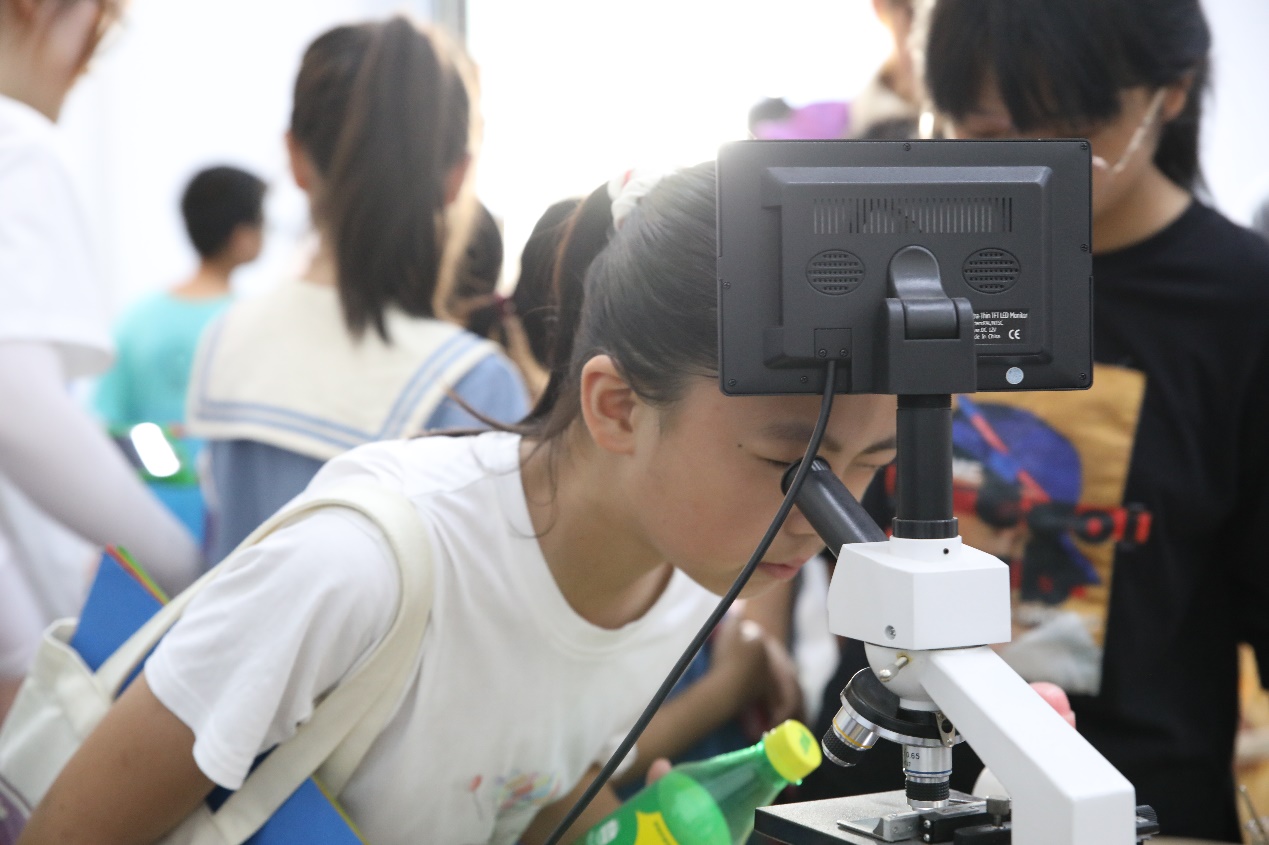 在灵芝文化文化展厅,美丽动人的灵芝传说、博大精深的中华灵芝文化、千奇百态的灵芝物种让小朋友们流连忘返、啧啧称奇。在观展的最后,展厅的工作人员让每位小朋友借助电子显微镜观察了原本肉眼观察不到的破壁孢子粉。