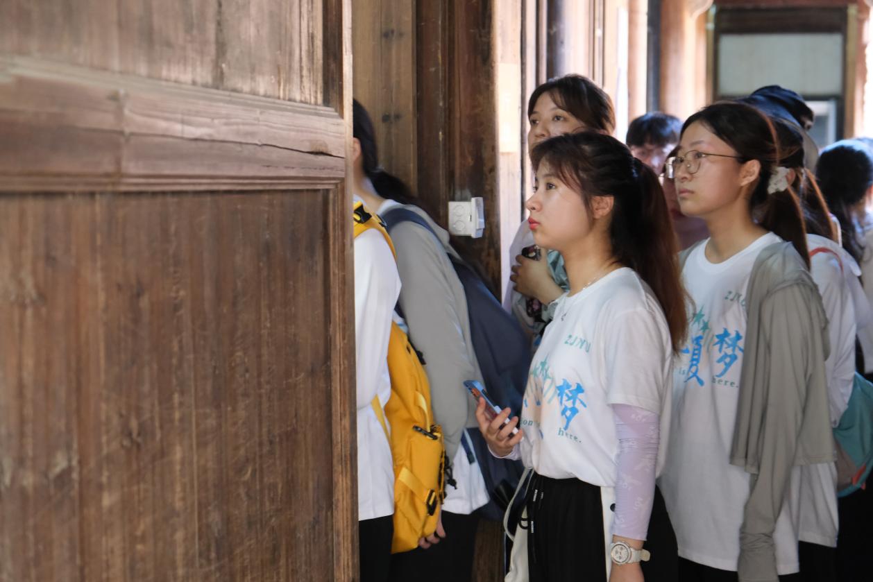 在热烈的阳光下,实践队成员一齐步行前往浙大旧址公园。走进公园,首先望见的是一面长长的砖墙,上面错落嵌着曾在国立浙江大学龙泉分校就职的教师及就读学生的姓名。不远处,一幢中西合璧式的建筑一下子吸引了所有人的目光。该建筑原为龙泉芳野村的曾家大屋,后被征用,成为如今的浙江大学龙泉分校旧址,是丽水市十大抗战遗址之一。