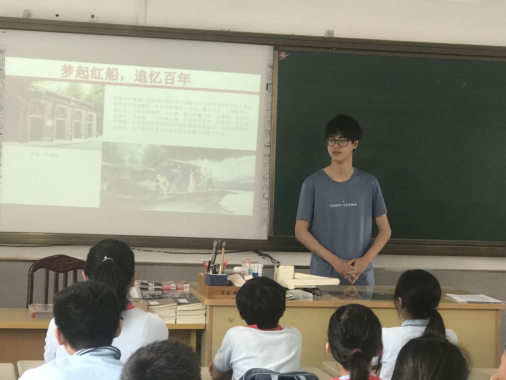 围绕这个主题,实践队主要采用PPT的形式进行宣讲,并组织学生制作以“红船”为主题的手抄报、黑板报等,最后进行评比和奖励;除此之外,组织开展红色故事宣讲会,采用将故事编排成表演的形式,为学生讲述红色故事。习近平总书记在党史学习教育动员大会上强调:“在全党开展党史学习教育,是党中央立足党的百年历史新起点、统筹中华民族伟大复兴战略全局和世界百年未有之大变局、为动员全党全国满怀信心投身全面建设社会主义现代化国家而作出的重大决策。”历史是最好的教科书,也是最好的清醒剂。