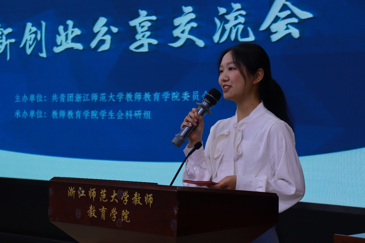 为进一步推进我院创新创业教育工作开展,营造良好创新创业文化氛围,激发学生创新创业意识与热情,引导学生在创新创业中增长智慧才干,10月29日晚,我院2021年教师教育学院创新创业分享交流会于17-112报告厅顺利召开。院党委副书记狄伟锋老师、院团委书记叶青老师、学工办辅导员蒲伟军老师及本硕各年级学生参与此次活动,邱亦可主持本次活动。同时本次交流会也是教师教育学院党委“我为群众办实事”系列活动之一。