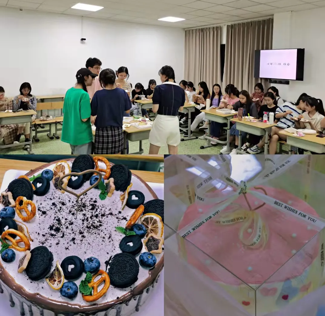 临近班会尾声,王同学为大家带来了一个小惊喜——颜值超高的蛋糕登场。在温暖轻松的氛围中,同学们都愉快地享受着美食带来的欢乐。