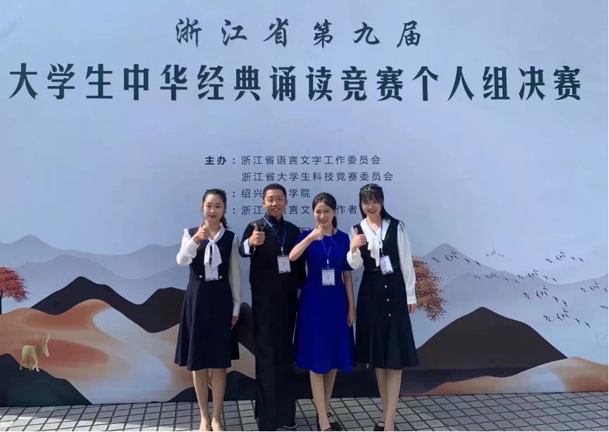 在刚刚过去的浙江省大学生中华经典诵读竞赛中,从去年四月,到今年十月,历时七个月;从校初赛、复赛、决赛,再到省初赛、决赛,她和小伙伴一起不断打磨稿子、练习即兴演讲。她由衷地感谢每一位帮助过她的老师,老师们细致而专业的建议和帮助让她收获颇丰,比如当对文本的情感把握不到位的时候,老师会帮助他们一起分析诗文内涵;在准备即兴演讲材料的时候,老师会帮助他们开拓思路。