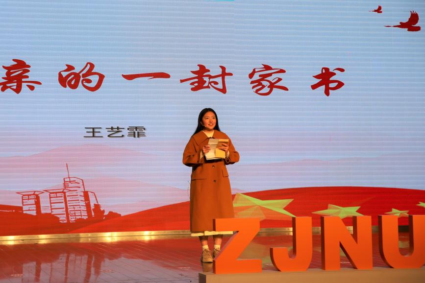 “父母之爱子,则为之计深远。”朗诵《致父亲的一封家书》中,身为战斗机飞行员的父亲为祖国航空国防事业奉献出一生,指引了“我”的前路,也指引着千千万万被守护着的在场的“我们”——以奋斗之我,不负韶华,勇立潮头。