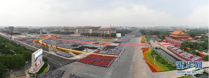 从人民英雄纪念碑到国旗杆,国旗护卫队的脚步铿锵有力,迈出了属于新时代的奋进足音;解放军空中梯队悬挂党旗和巨幅标语飞越天安门上空,战鹰列列彰显大国实力;习总书记在天安门城楼“中国向世界的四个庄严宣告”,更是在教师教育学院的师生心中引发共鸣,大家发自肺腑的礼赞和掌声经久不息。
