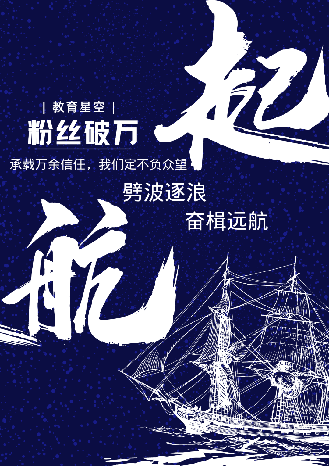 承载万余信任,我们定不负众望!在未来的漫漫岁月里,教育星空将会继续努力,与教育学子们一同成长,始终坚持以弘扬主旋律、传播正能量为己任,致力打造集新闻资讯、宣传教育、资源服务、舆论引导为一体的新媒体平台。教育少年们也一定会走向远方的大地,在属于自己的领域中劈波逐浪、奋楫远航。