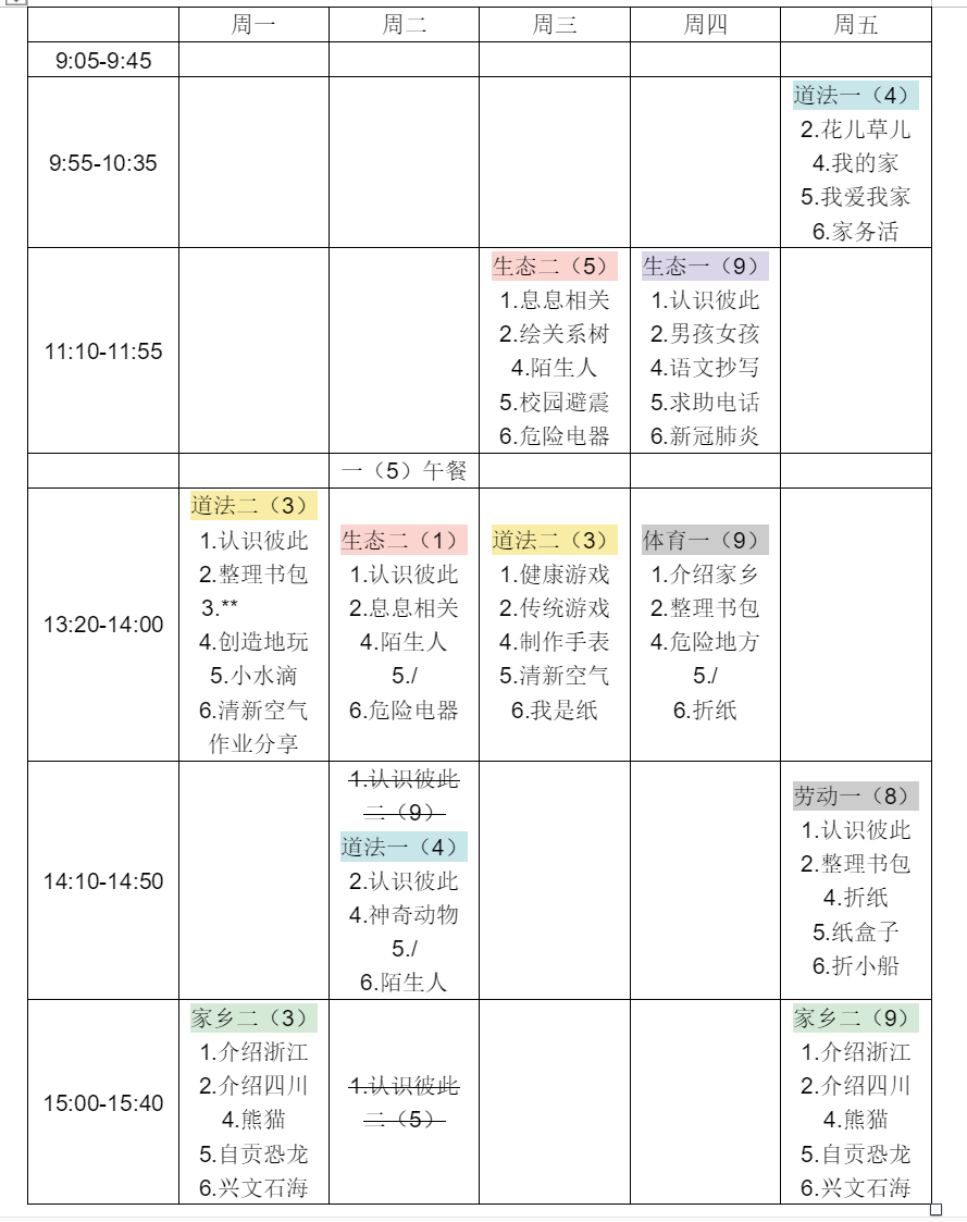 张思睿记录的支教6周安排表