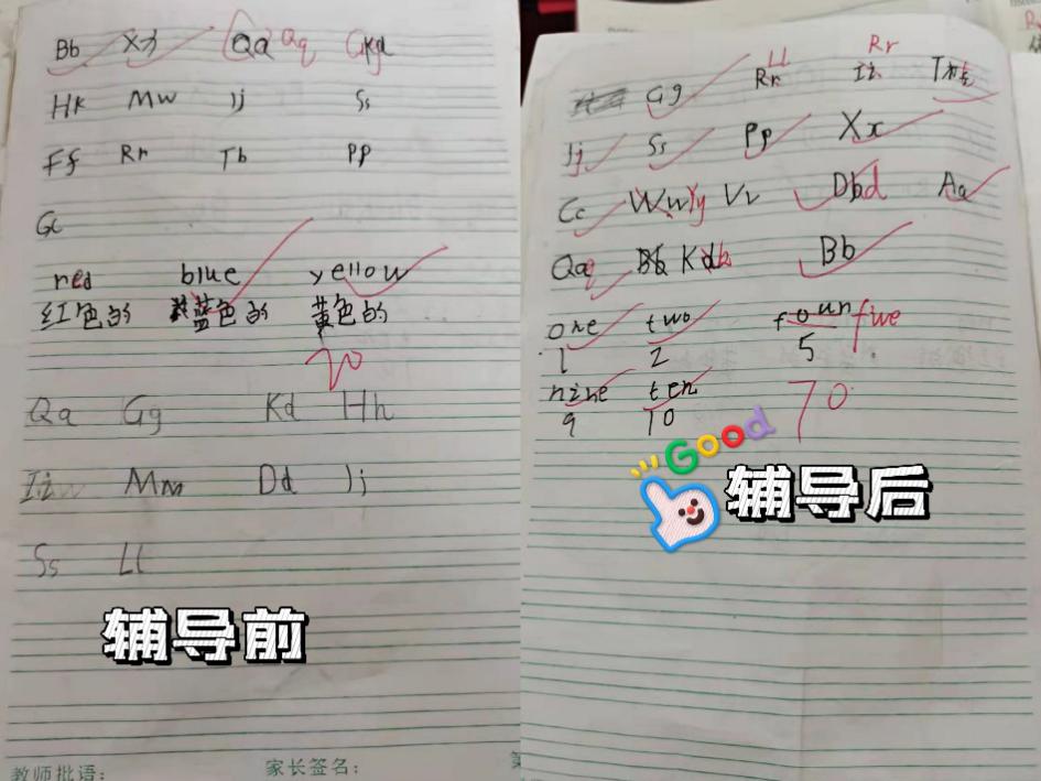 支教团成员应润苗辅导学生后的进步对比