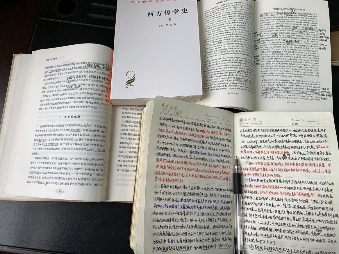 如果说兴趣是人的天赋和本能,那么在王思宇看来,“书山学海”中无穷无尽的知识与智慧就是挖掘兴趣、满足求知欲的好帮手。他喜欢做密密麻麻的读书笔记,写随笔,列出自己看过的书单,记录自己每天的学习时长等,目的就是尽可能地将学习过程与结果“可视化”,时刻提醒自己要脚踏实地,避免自欺欺人。