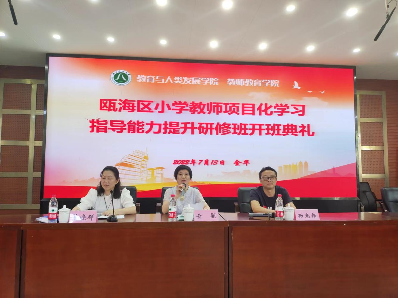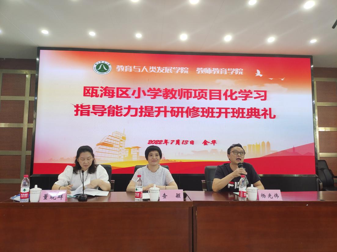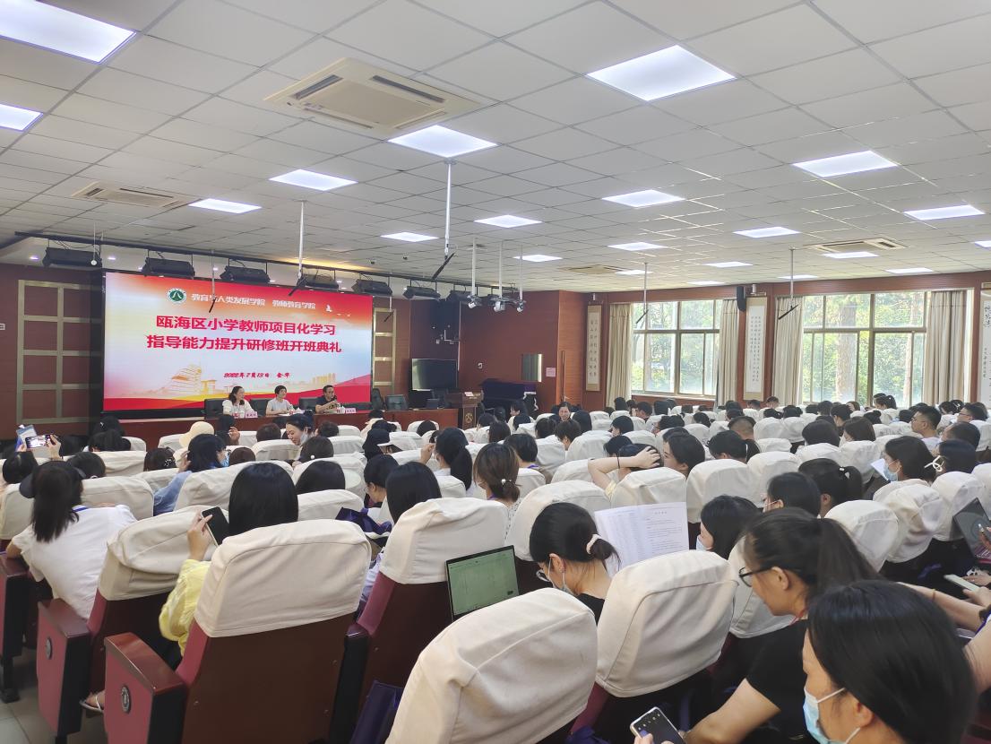 7月13日下午,浙江师范大学教师教育学院举办了瓯海区小学教师项目化学习指导能力提升研修班的开班典礼,KY开元集团党委书记查颖致辞,瓯海区教师发展中心(教育研究院)副院长董晓群讲话。瓯海区230多名小学骨干教师参加培训。