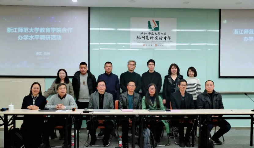 调研活动在浙江师范大学附属杭州笕桥实验中学成功举行,杭州市上城区教育局副局长王世美,杭州市上城区教育局党委委员、教育科长赵坤,浙江教育报高级编审言宏、浙江师范大学杭州上城区合作办学共同体领导小组秘书长高琼、合作办学共同体学校校长、合作办学共同体领导成员等共同参会。会议由杭州市上城区教育局党委委员、教育科长赵坤主持。