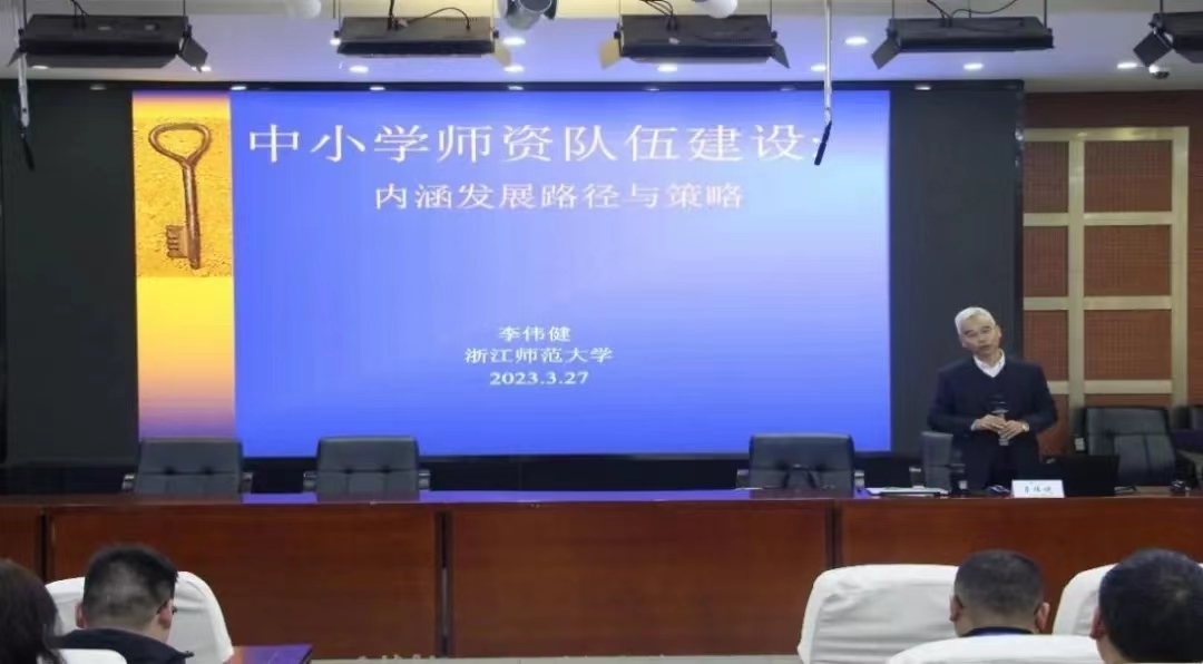 之后,李伟健教授开展题为《中小学师资队伍建设:内涵发展路径与策略》的专题讲座,为培训班的学员们上了精彩的第一课。