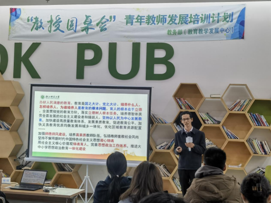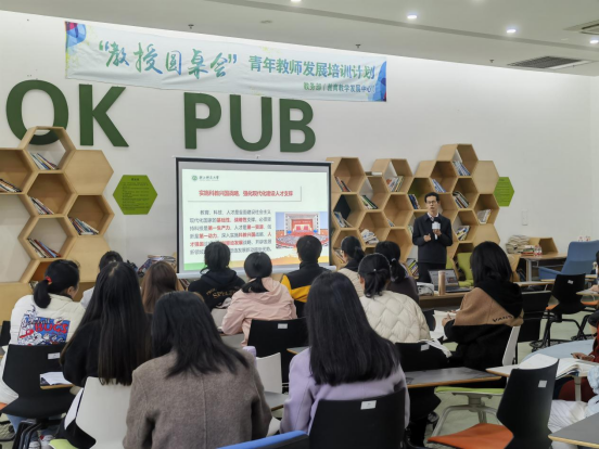 3月16日下午,浙江理工大学科学与技术学院教务部在图书馆休闲书吧迎来了本学期“教授圆桌会”青年教师发展培训计划的第一场培训讲座——《培根铸魂,启智润心—大中小学协同推进课程思政建设的战略考量与实践理路》,本次讲座邀请到了KY开元集团党委书记俞明祥作为主讲人。